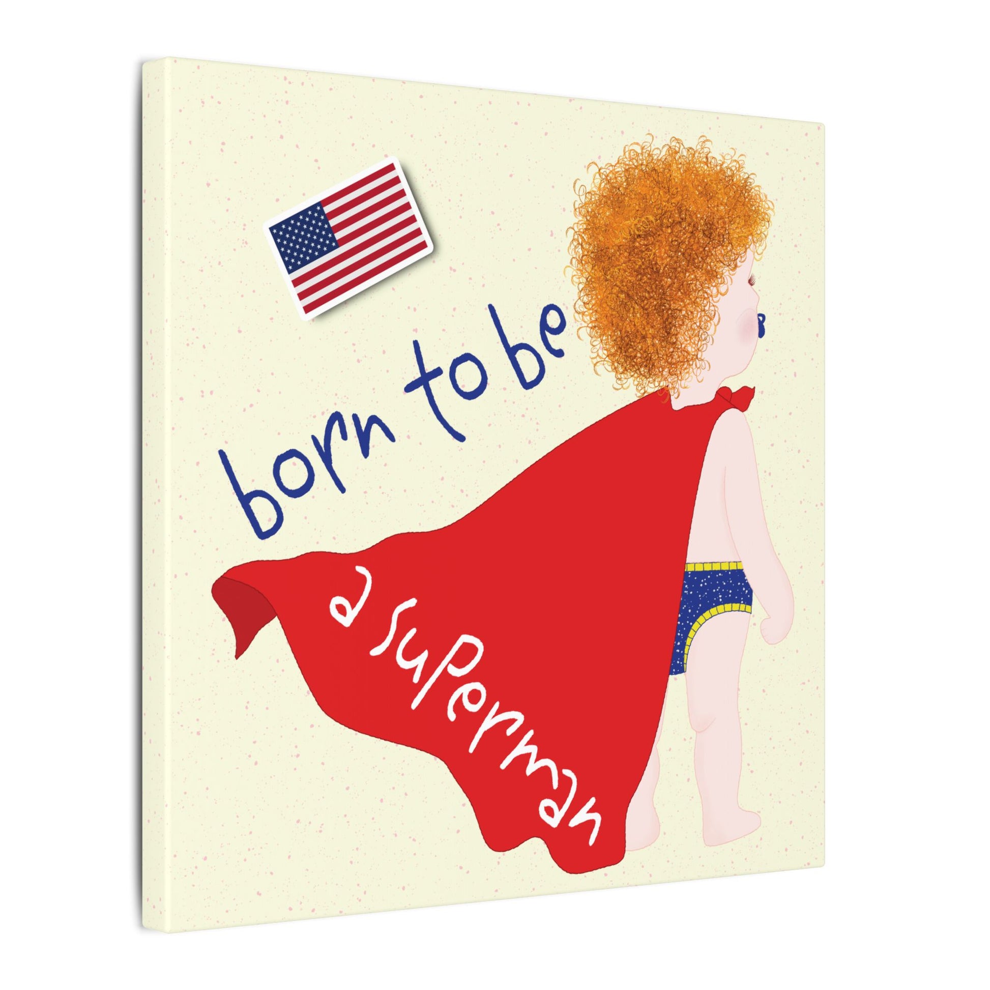 Funny blonde superman nursery canvas, humorous superhero gift for baby boy, Free U.S. Shipping 🖼️