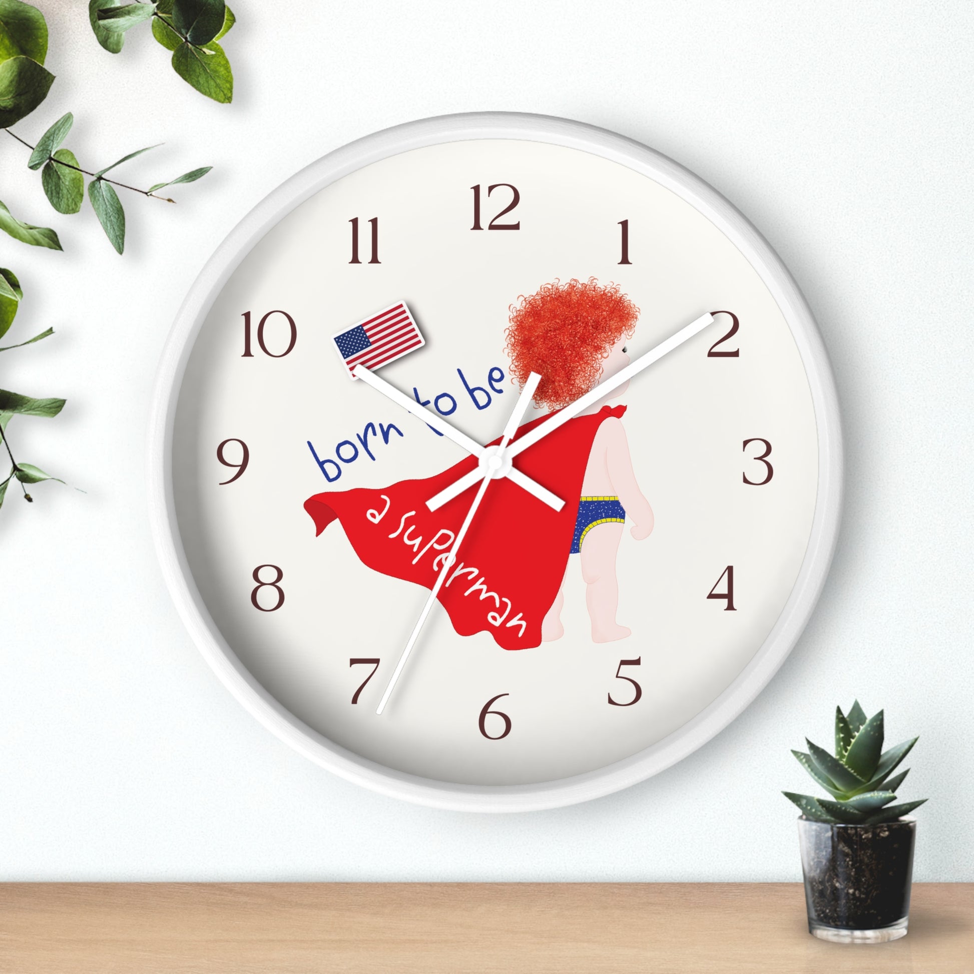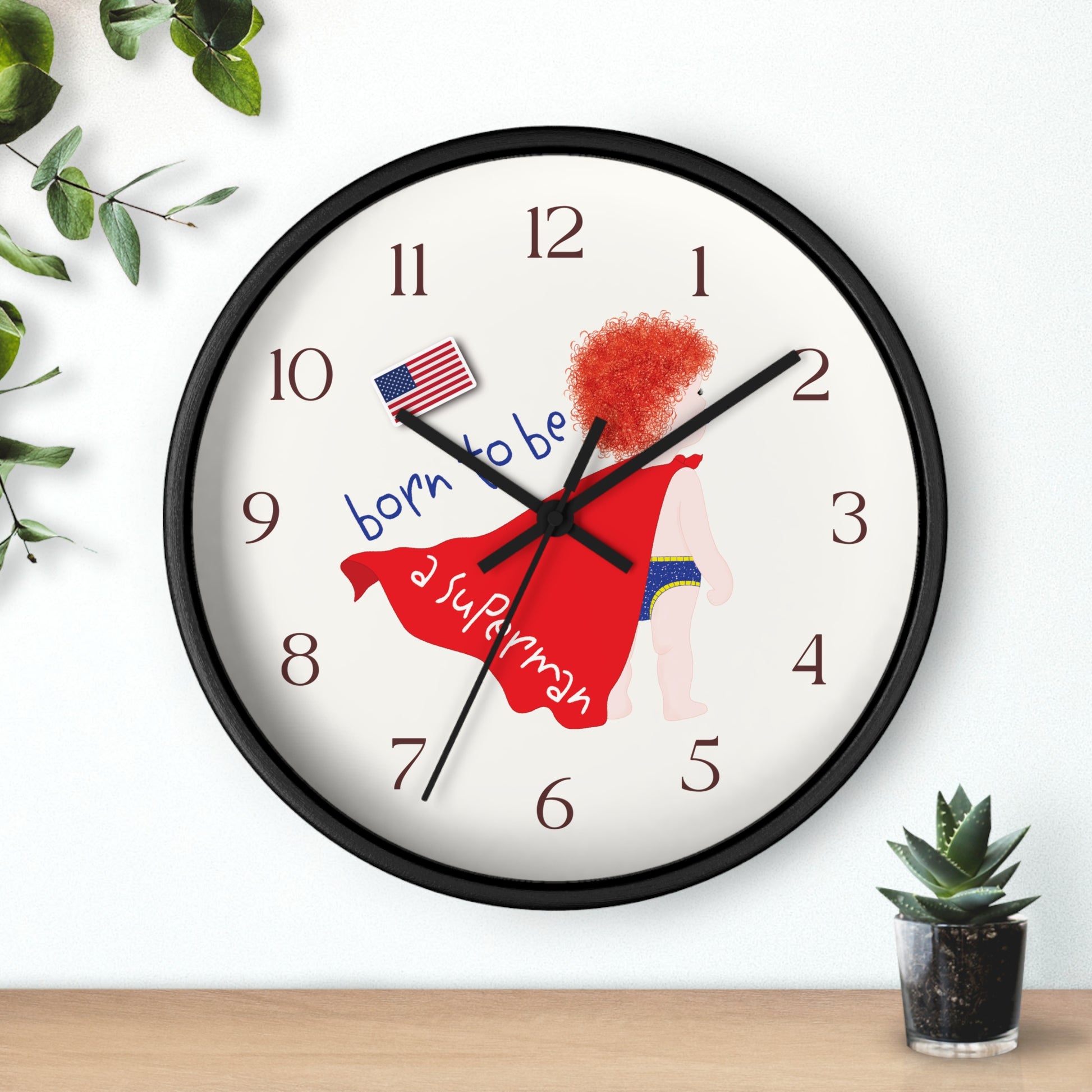 Redhead superman-themed wall clock, humorous superhero gift for baby boy, Free U.S. Shipping🎁