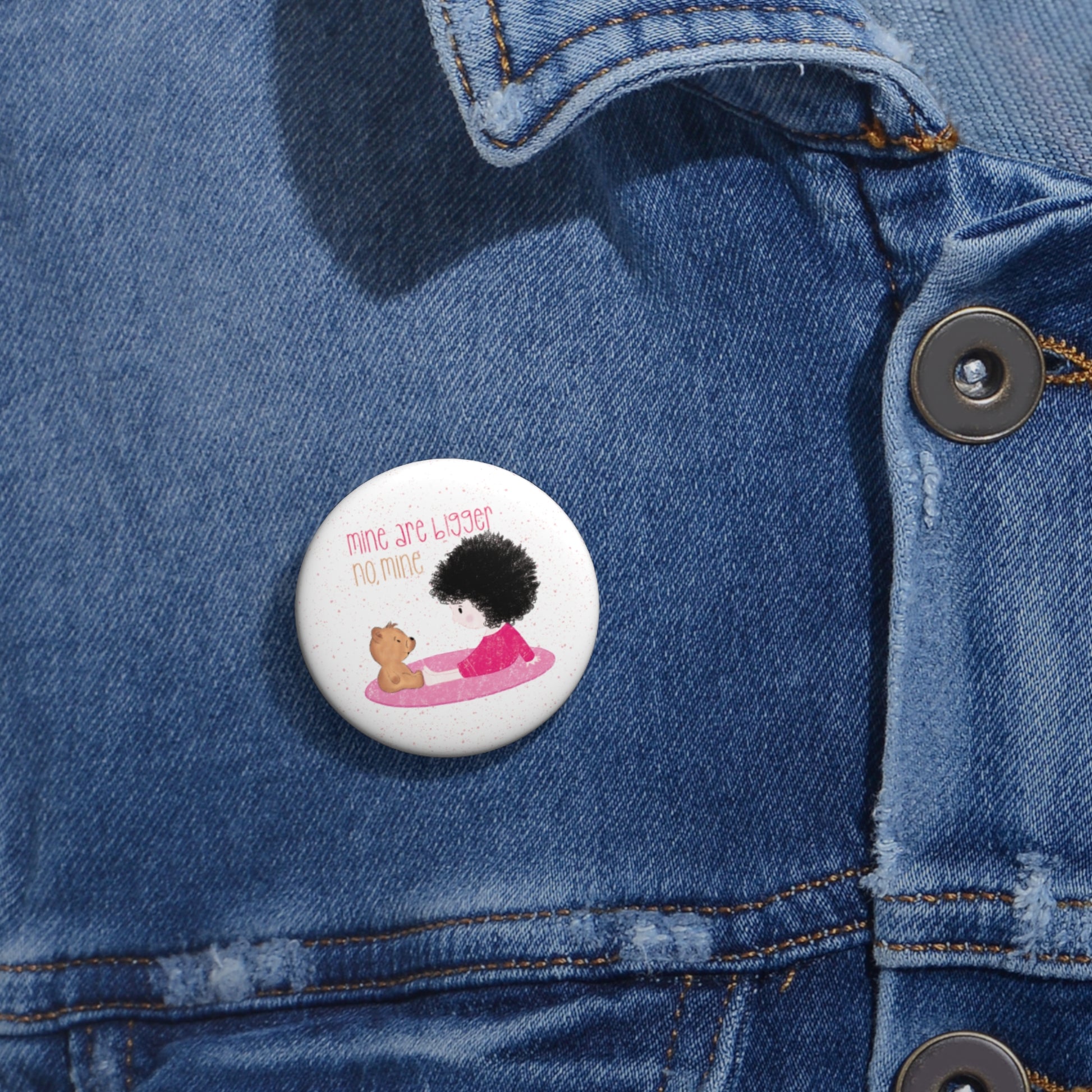 Got a little one who's already perfecting their debating skills? The MINE ARE BIGGER, NO MINE aka MINI DEBATE PRO! Baby Pin Button is the hilarious accessory your tiny tot needs! Featuring an adorable illustration of a toddler and a teddy bear having the ultimate showdown, this pin captures those epic moments of baby competitiveness that every parent can relate to.